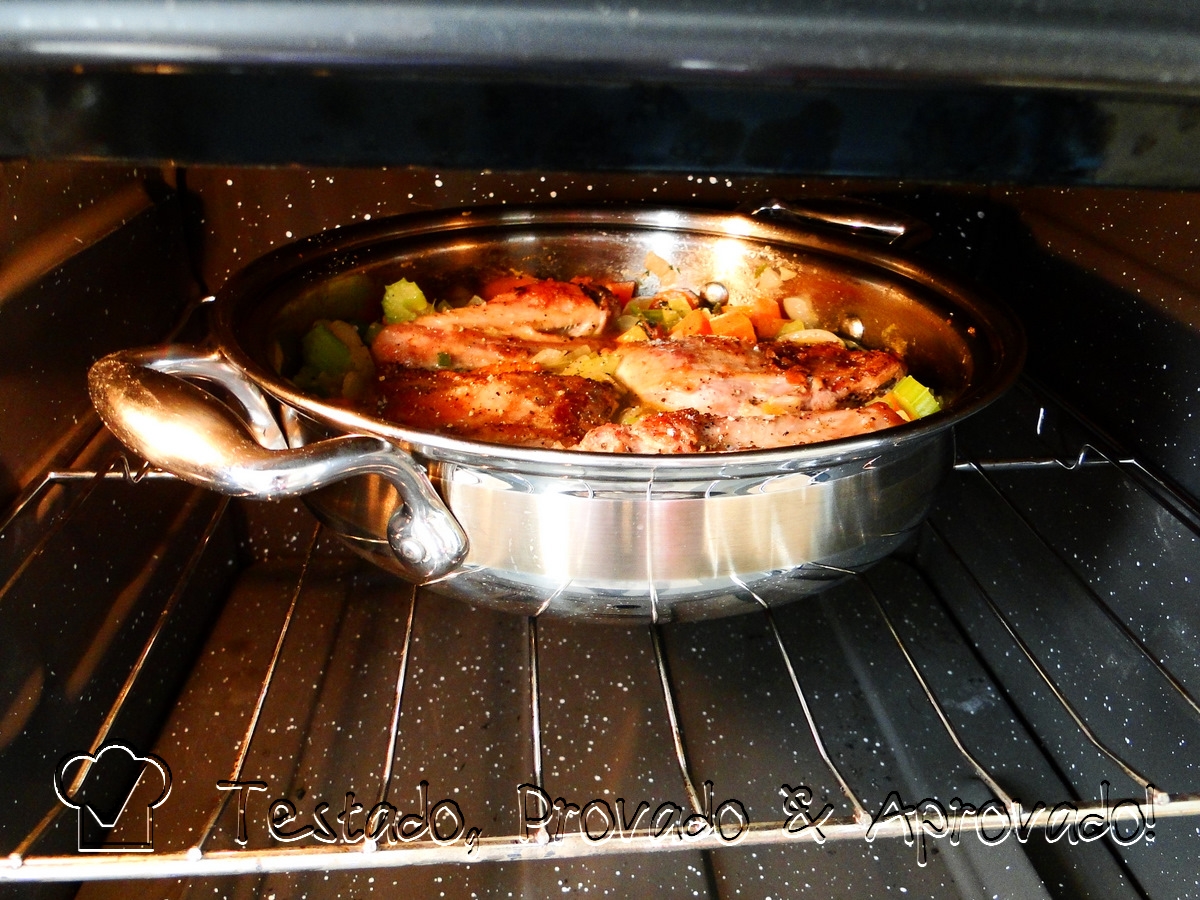 Let it come to a boil over high heat and transfer to the oven. If you are using a pan with plastic handle, transfer to an oven proof dish.