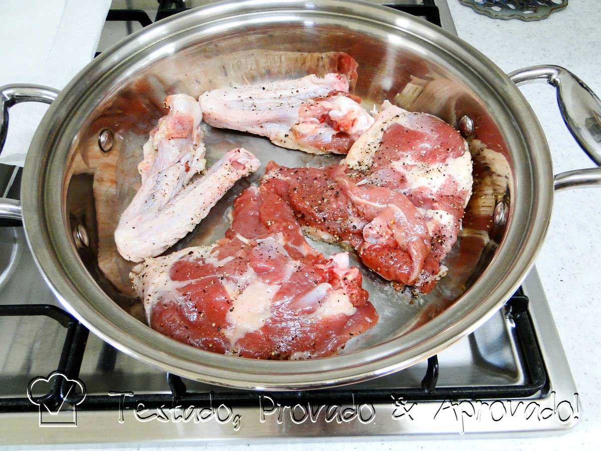 When the legs are browned, turn them over and sear for a minute or so and remove to a plate.