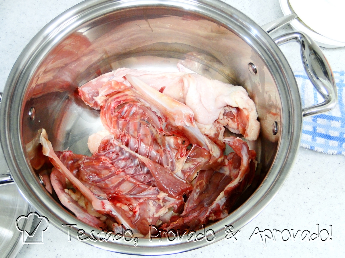 In a large pot I put the carcass of the duck. You may roast the bones if you wish for even better flavor (I didn't do that, but next time I will)
