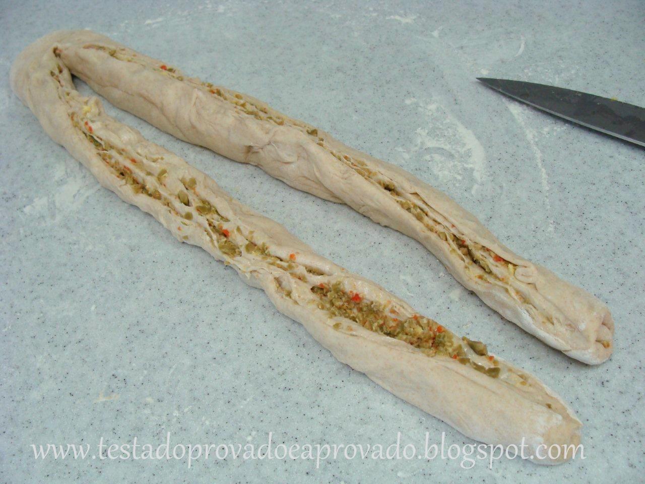 Roll the dough and cut it lengthwise but don't separate the halves. This way you will be able to see the layers of filling.