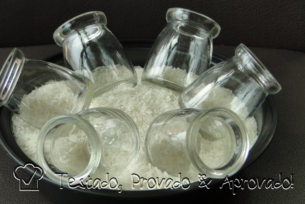 I used raw rice in a bowl as a "bed" for the little jars to stay inclined and stable while firming up in the fridge.