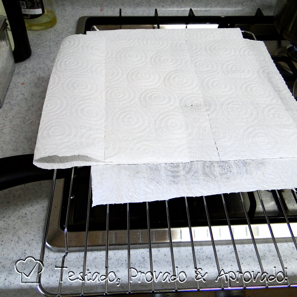 I placed the breasts, skin side down, in a COLD skillet without any oil. Then, I turned on the heat to low to allow the fat to render slowly and start crisping up the skin. At this stage, the fat began splattering, so I improvised a rack with some paper towels to save myself some extra work cleaning up the kitchen. It worked pretty well.