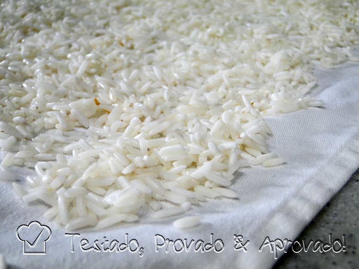 I washed the rice and soaked it in water for 1 hour. Then I drained it very well and spread it on a clean cotton towel and left it there until completely dry.