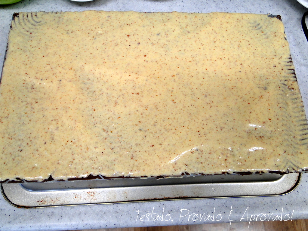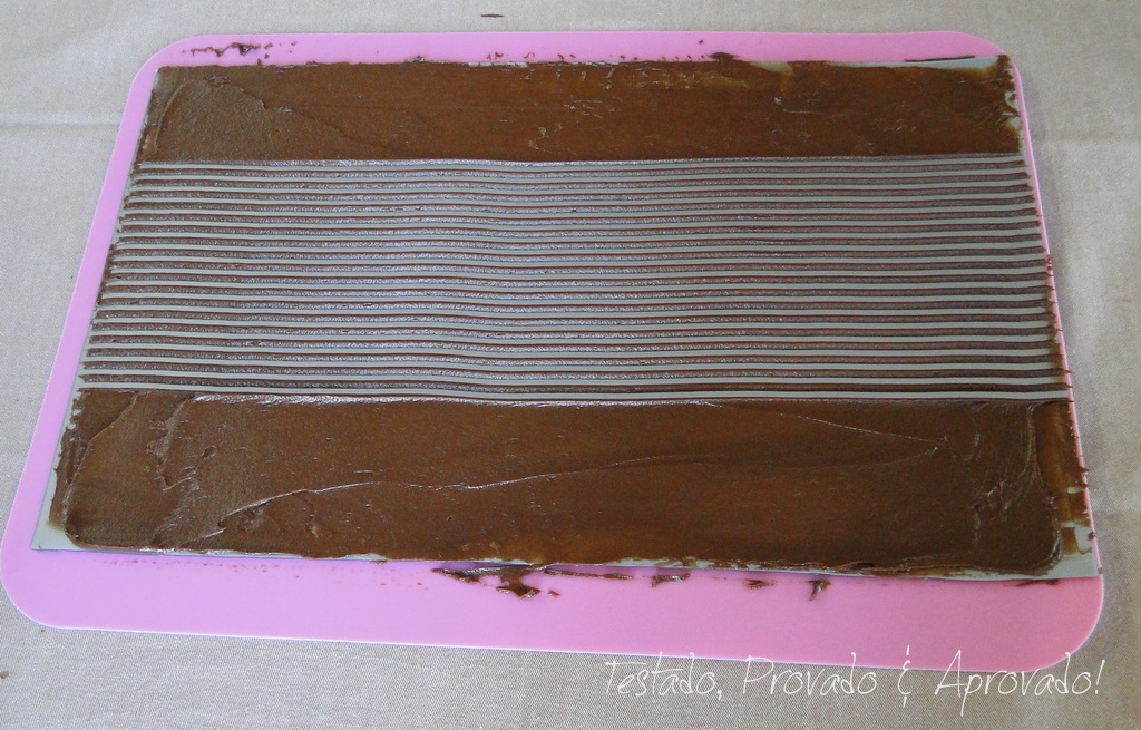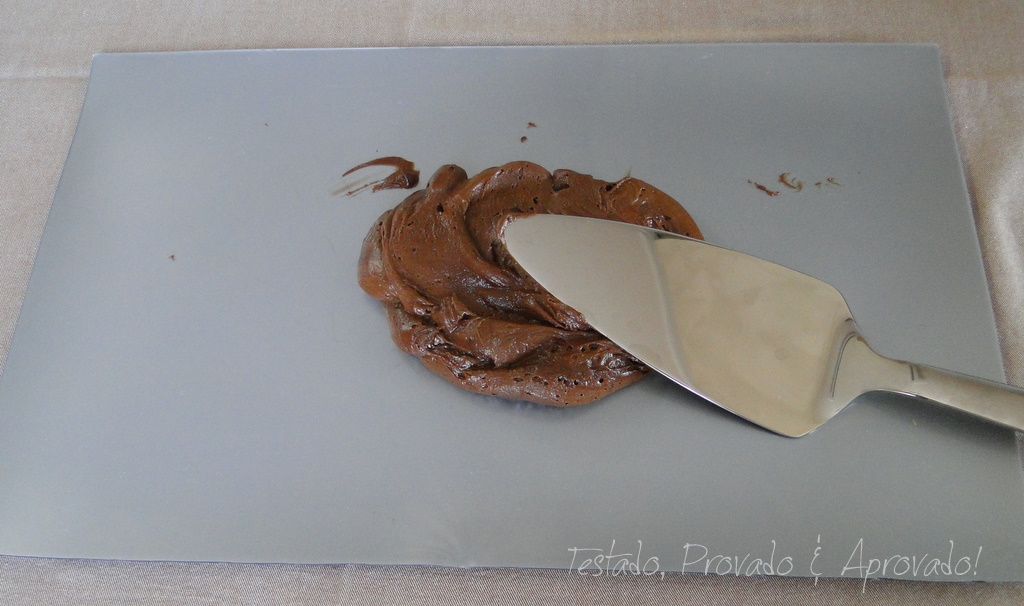 Remove the Décor Paste from the freezer and quickly spread the sponge batter over the design, covering it totally. It should be a thin layer so that it is malleable after baking.