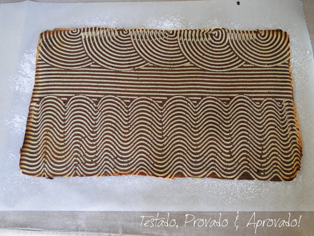 Because I used parchment paper, the sponge kind of wrinkled slightly, which is not a problem, but you will see the difference it makes when done on a baking silicon mat in my second experiment.