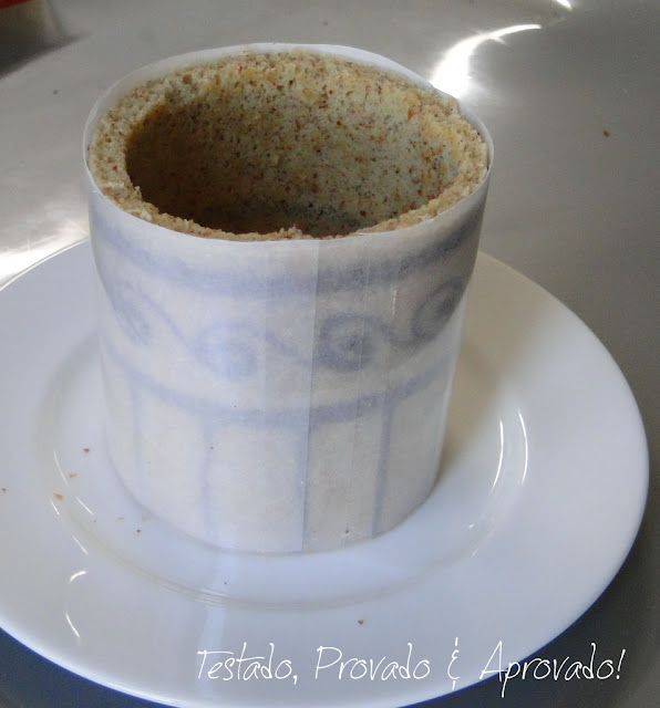 You are supposed to use a metal ring/mold (or a spring form pan) for this dessert, but I had neither, so I used a piece of acetate lined with parchment paper. It worked fine.