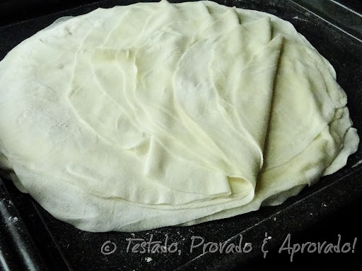 I was speechless when I read about this month's challenge. It's been a long time since I started searching for a homemade phyllo pastry recipe. And so you ask, why would anyone want to make phyllo dough from scratch when we can buy it ready to be used and save a lot of work and time? Well, it isn't very easy to find phyllo dough in Brazil and I have never seen it in Korea (my two places of residence at the present time). Anyways, I do love a daring challenge and I knew that making homemade phyllo would be a way to challenge my baking skills to the next level!