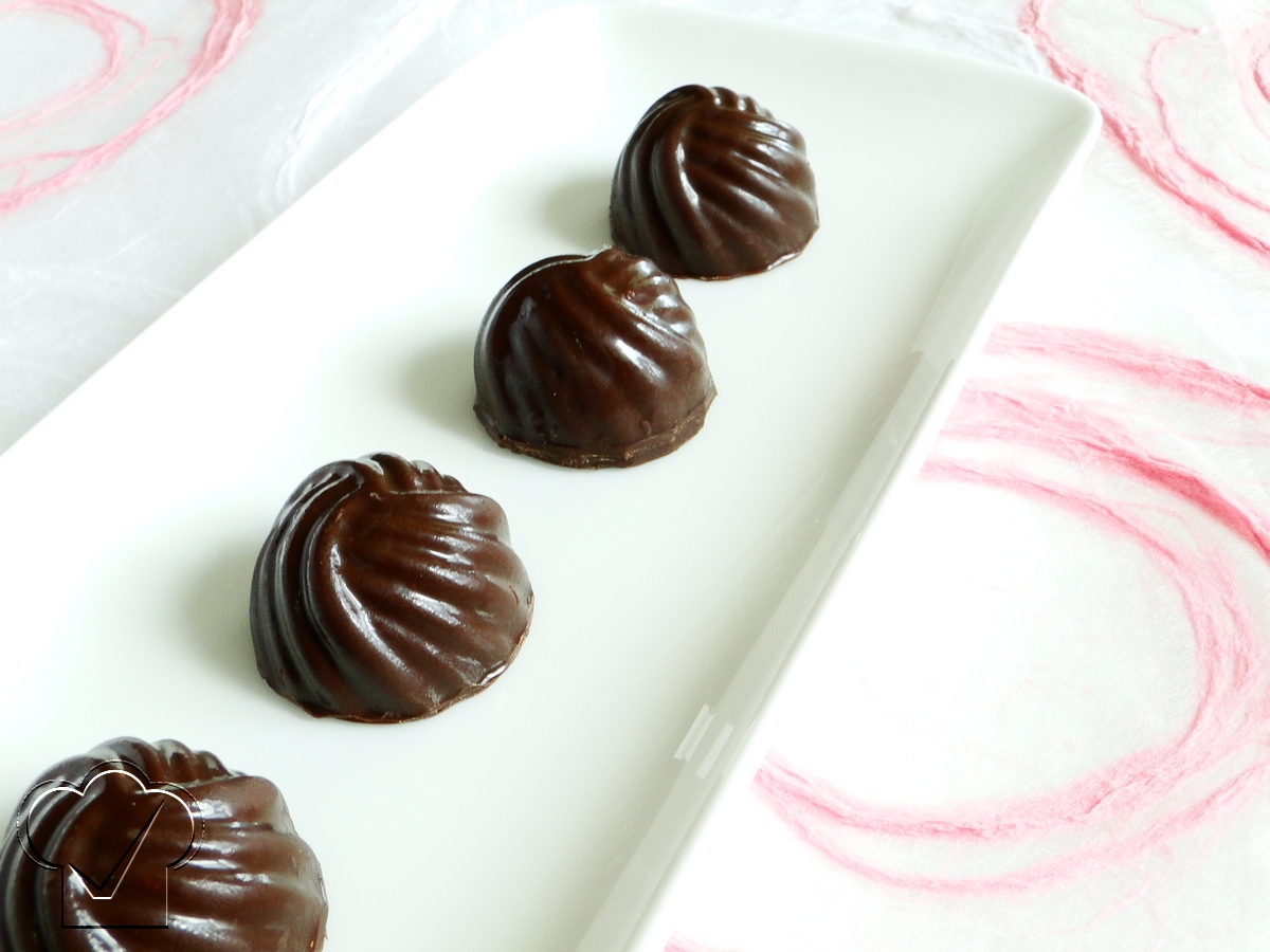 Leve à geladeira por 10 a 15 minutos ou até que solte do molde com facilidade. Não bata no molde pois eles são frágeis e poderia rachar os bombons.