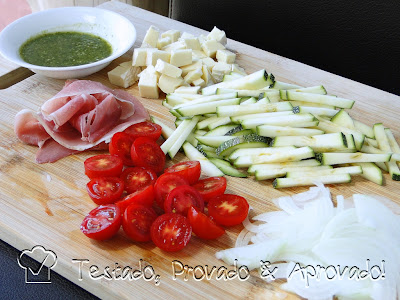Como diz o ditado, "Quem conta um conto aumenta um ponto".... ou diminui.... ou substitui... quando o assunto é culinária. Foi assim com esta receita maravilhosa que a Tânia do ZAKUSKAS compartilhou conosco. A hora de fazer o almoço já se aproximava quando fui checar as novidades e encontrei esta receita. Eu tinha todos os ingredientes e mais algumas coisinhas que precisavam ser usadas na geladeira antes que se estragassem. Como tem batido inspiração Italiana por aqui ultimamente, tinha alguns ingredientes prontos para "Italianizar" qualquer receita. Então, nesse caso, a Tânia contou seu conto e eu aumentei meu ponto :o)