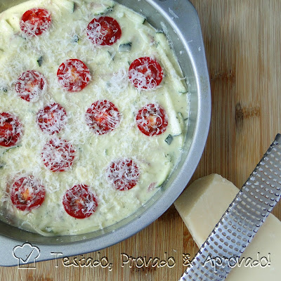 Polvilhei queijo parmesão Grana Padano por cima de tudo e levei ao forno 200°C por 30 minutos, ou até corar.