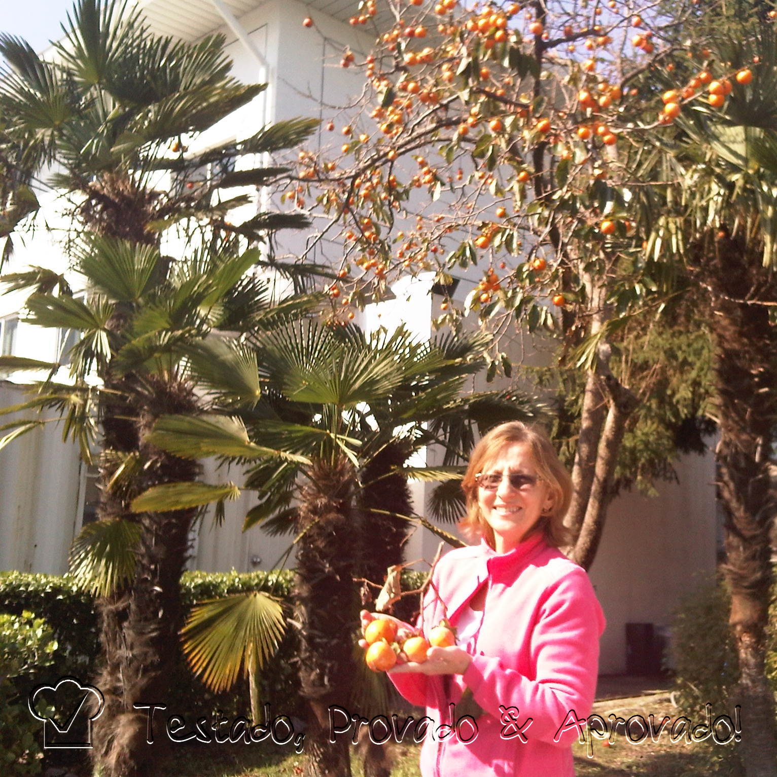 Abóbora eu também não tinha em mãos, portanto usei uns caquis que pegamos da árvore que faz parte do paisagismo do hotel aqui do nosso condomínio. Estava carregada e alguns galhos já estavam caídos pelo chão.Os caquis se destacam nos galhos quase completamente pelados e podem ser avistados de longe! Pena que não estávamos com a máquina fotográfica e tiramos as fotos com o celular.