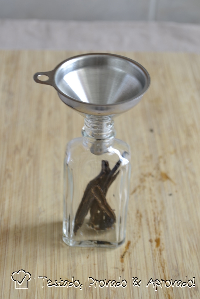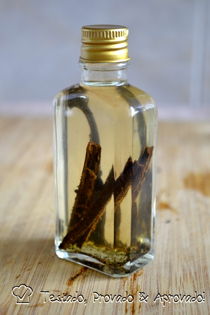 Conforme o tempo for passando, o álcool vai ganhando uma cor âmbar e todo o aroma da baunilha.