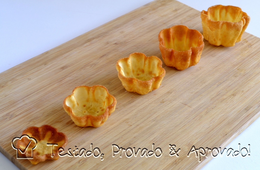 Além das Rosettes, o kit de fôrmas que comprei veio com uma forminha para fazer Timbales. Estas forminhas podem ser recheadas a gosto, na hora de servir, com doce ou salgado.
