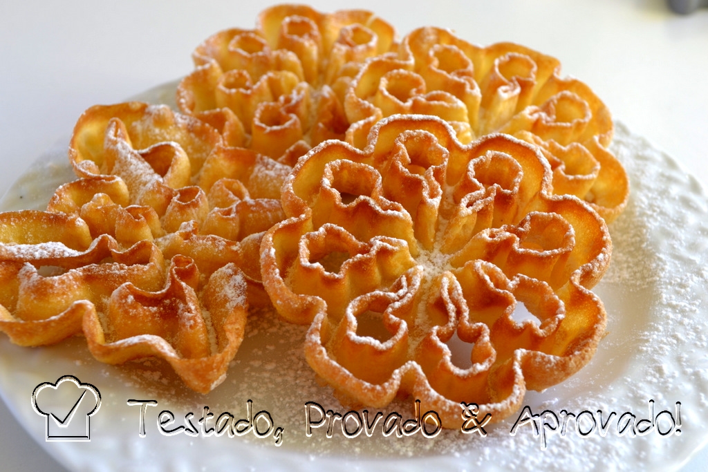 olá, em primeiro lugar parabéns pelo seu magnifico blog.Conheço perfeitamente esse doce, aqui em portugal costumamos confecciona-lo na época natalícia.Conheço pelo nome de filhoses em flor.A forma em ferro fundido tem um gancho comprido que se segura com a mão e se mergulhar primeiro em óleo quente depois na massa e a flor desprende-se ficando estaladiça.