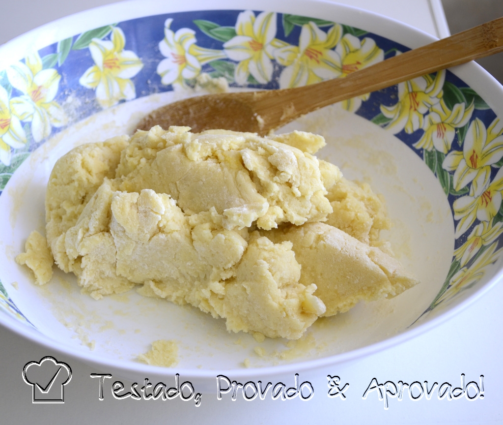 Misture sem bater e junte farinha peneirada, aos poucos, até a massa agregar.