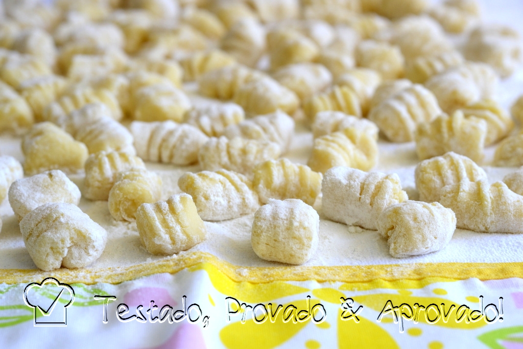 Não importa o quanto uma receita, proposta nestes desafios, é nossa conhecida. Sempre aprendemos alguma coisa nova. Sempre que faço gnocchi "inhoque" aqui em casa, uso a batata que tiver disponível, e coloco quanta farinha seja necessária para dar consistência à massa. Fica muito bom, mas adorei aprender algumas dicas preciosas para fazer o autêntico gnocchi italiano. O segredo é usar o mínimo possível de farinha cuidando, no entanto, para não deixar a massa mole demais a ponto de se desmanchar ao cozinhar. Dessa forma, os gnocchis ficam leves, macios, e deliciosos.